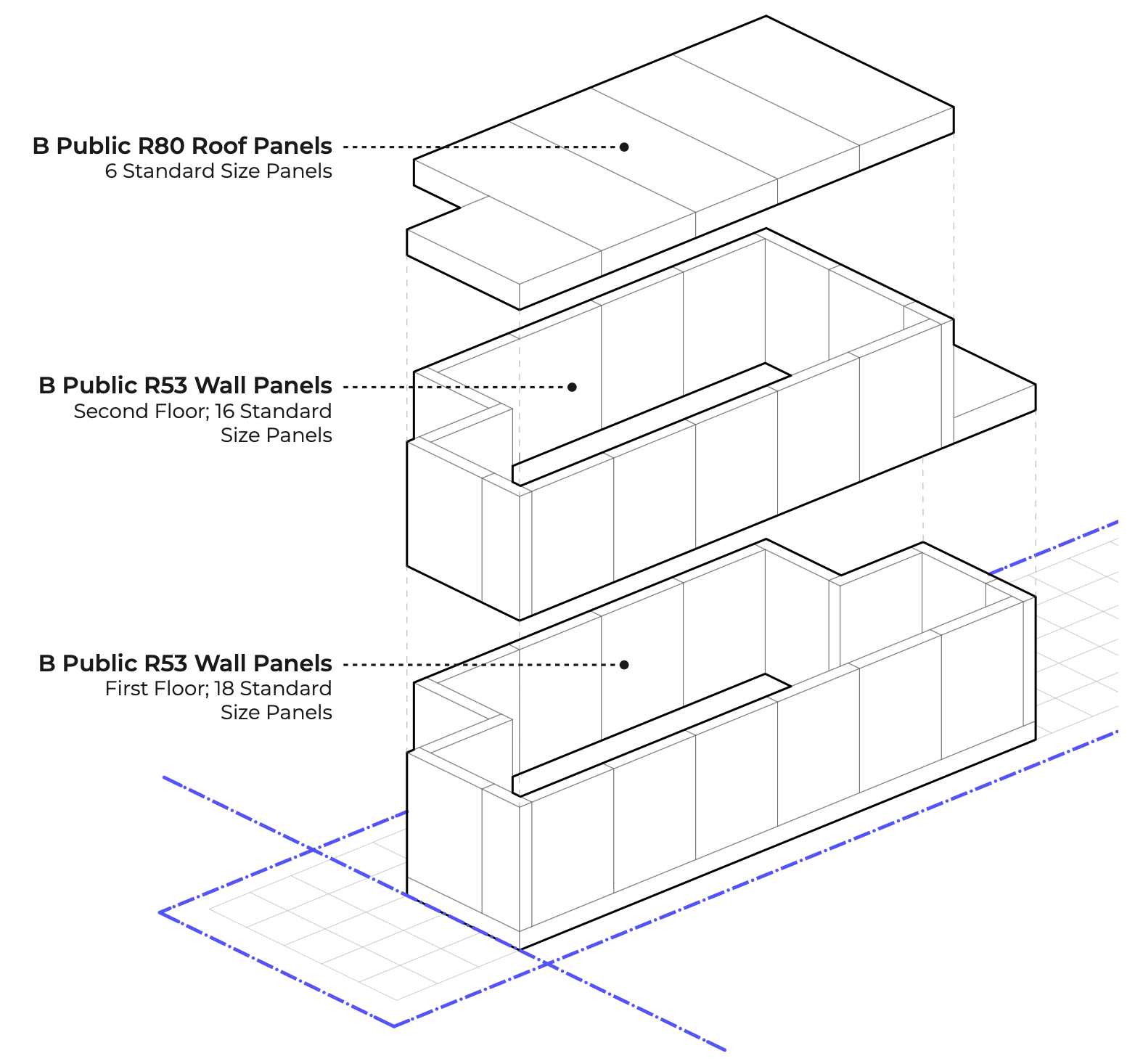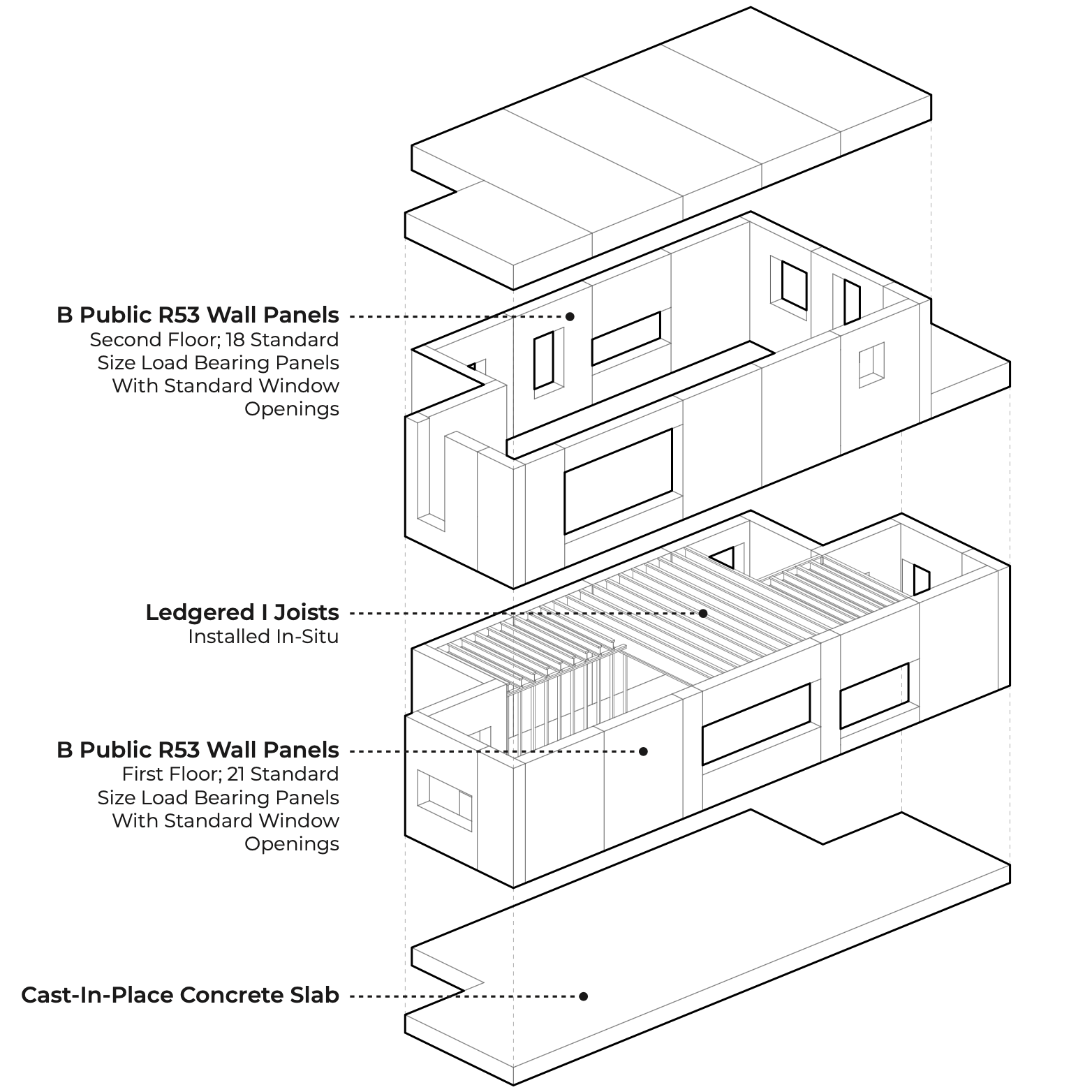 The panelization of its construction method allows the home to be built substantially quicker than a conventional stick frame home while providing passive level energy performance.